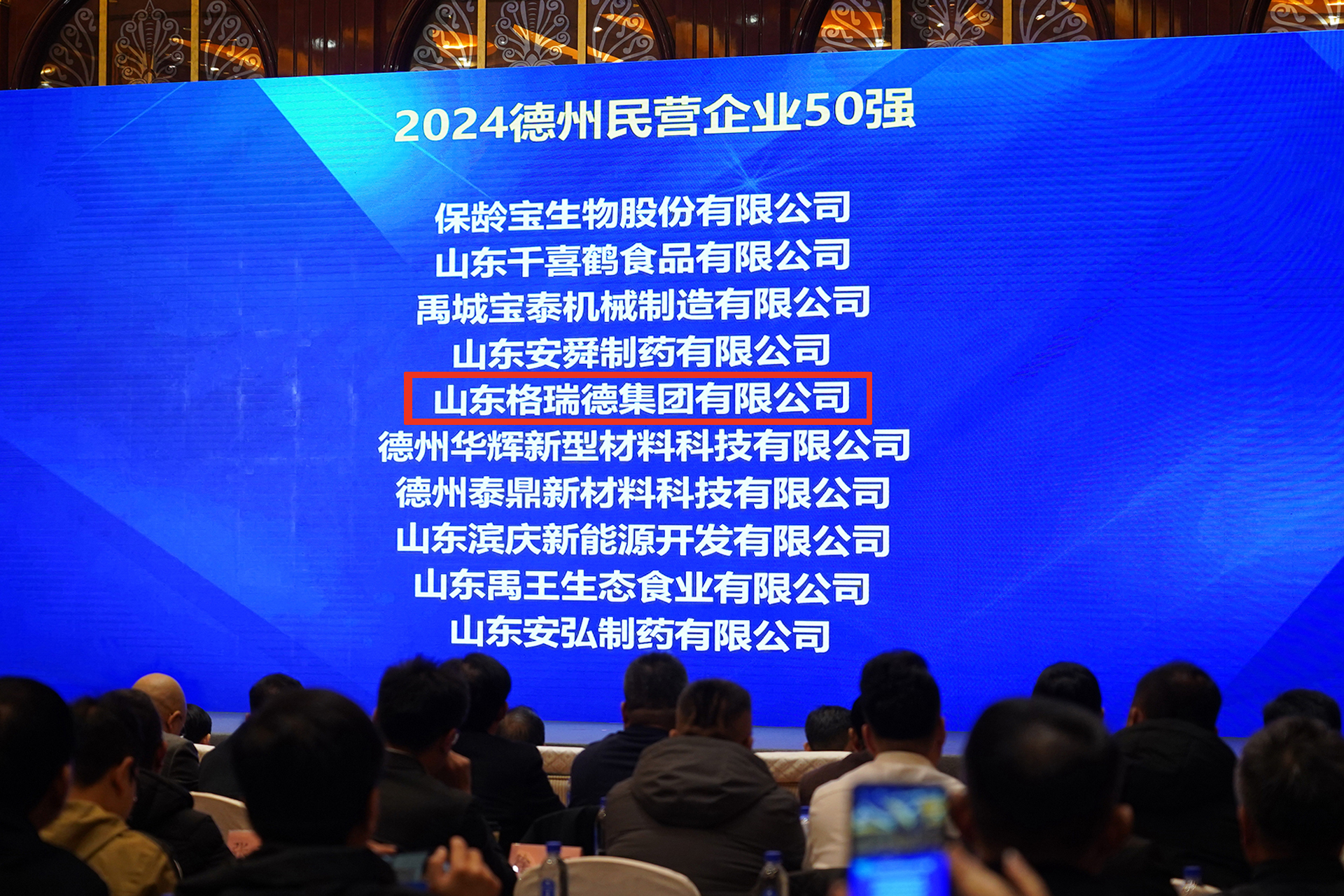 12月,2024德州民营企业50强发布暨“长三角商会名企德州行”活动在德州举行。在众多优秀企业中,山东格瑞德集团有限公司脱颖而出,荣膺“德州市民营企业50强”,作为德州民营企业的佼佼者,格瑞德始终坚守初心,不断追求卓越,凭借敏锐的市场洞察力和强大的技术实力,不断创新产品,提升服务质量,赢得了市场的广泛赞誉。