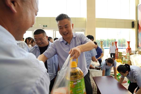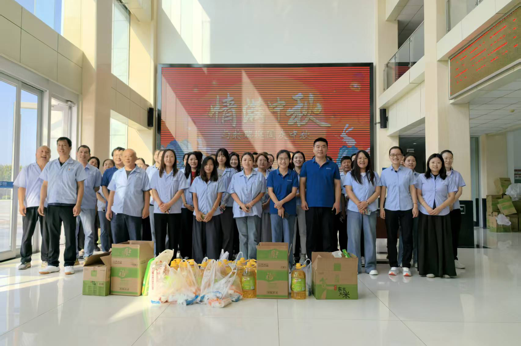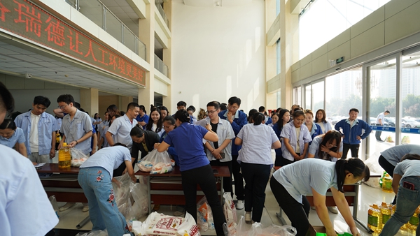 一份份承载着公司关怀的福利品发放到员工手中,同时也代表着公司向每一位员工及员工家属的关怀与中秋祝福。